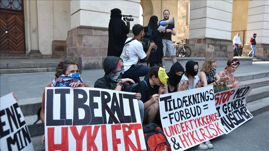 أول مظاهرة ضد قرار حظر النقاب في الدنمارك
